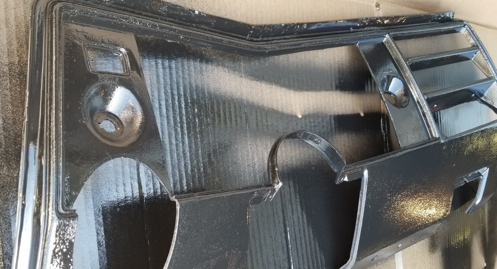 More sanding, cleanup, etc., and then a coat of the "charcoal" paint I'd