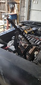 | Did get the underhood wires for the AC set up and wrapped. I think the relay goes here. At least... now it will. | ![]() |