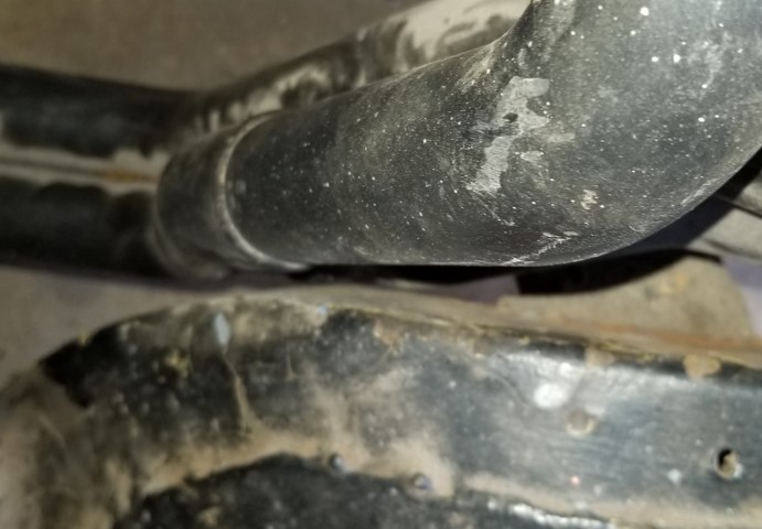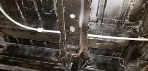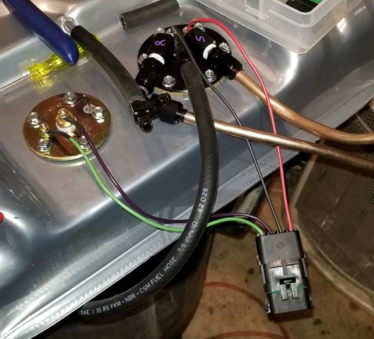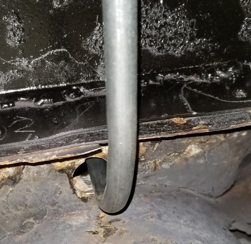 ![]() | So the Tanks tank requires a vent line, and it says it "must be higher than the filler neck" which is pretty high on an El Camino. There's not anywhere near the tank I can use, and I don't have any 5/16" hardline. What I do have is 1/4" steel line that I'm not going to use elsewhere, and some compression fittings and 5/16" hose barbs. Here the line curves around from the front of the tank to the area behind the filler. |