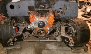 ready to come out - the mounts are unbolted, the tranny crossmember has been