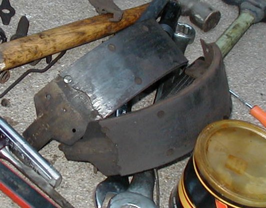| Guess the wobbling of the hub from the destroyed inner bearing beat the drum against the shoes. They're pretty beat up, but new shoes aren't in the budget this week. New bearings or spindle weren't, but I seem to have had one new set of bearings, one new seal, and one replacement spindle in the parts bin.. they've been there for years, not even sure why I bought them all in the first place. New shoes next payday. |