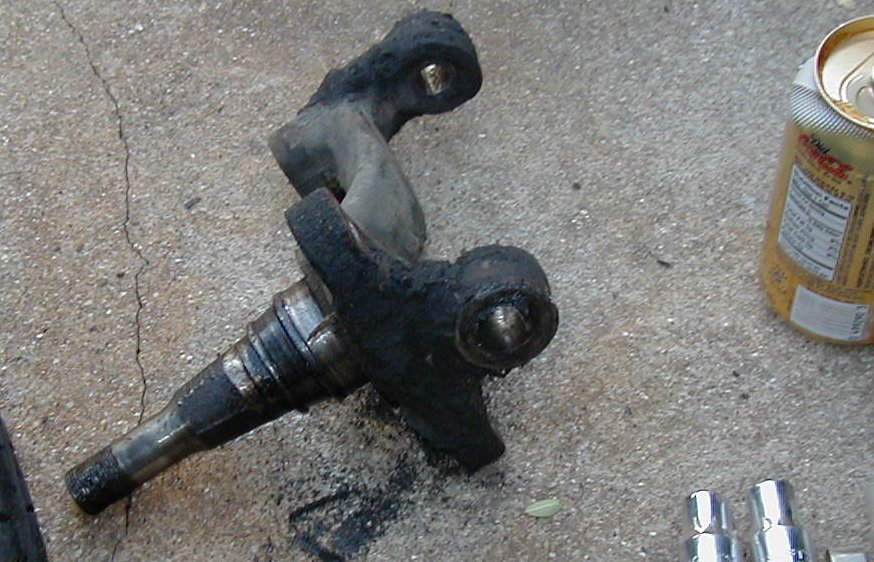 | Replacement spindle installed, time to start reinstalling the brakes. "Installation is the reverse of removal", I took no other pics during the reassembly. |