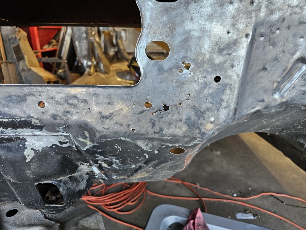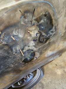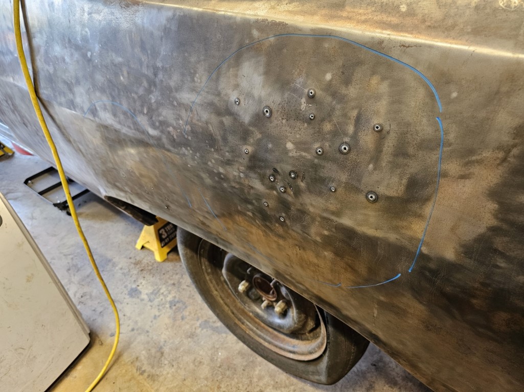 Used the stud welder to pull out the dent. It left holes. |