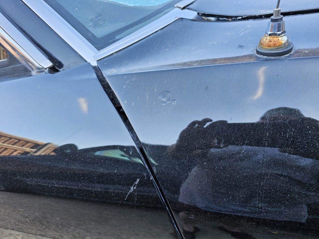 Also not pictured - the mirror on the pass side (which I've never been able to use to look behind me because it's in the wrong place) had the glass fall out and shatter. Rather than replacing that glass, I think probably better to remove it and weld up the screw holes; so now I get to paint (at the least) the hood and both doors. Sigh.