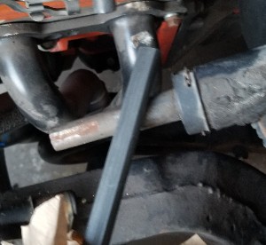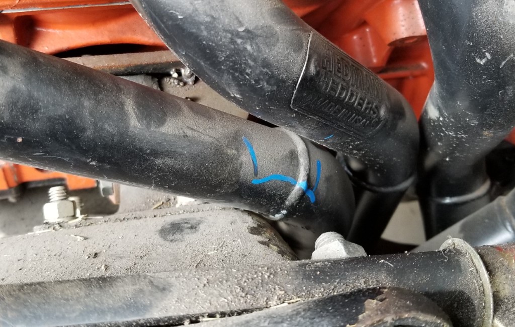 ![]() | I'm not going to be cutting up the headers. Instead, I hit them with a hammer. I'd been pointed at this video (if the link wanders off, it's the episode of Engine Masters where Freiburger and Dulcich beat up a set of headers on an engine while it's on a dyno to see just how much power is lost - spoiler: damn near none) so I became okay with pounding some dents. Still needs a little more but at least it bolts to the head now. |