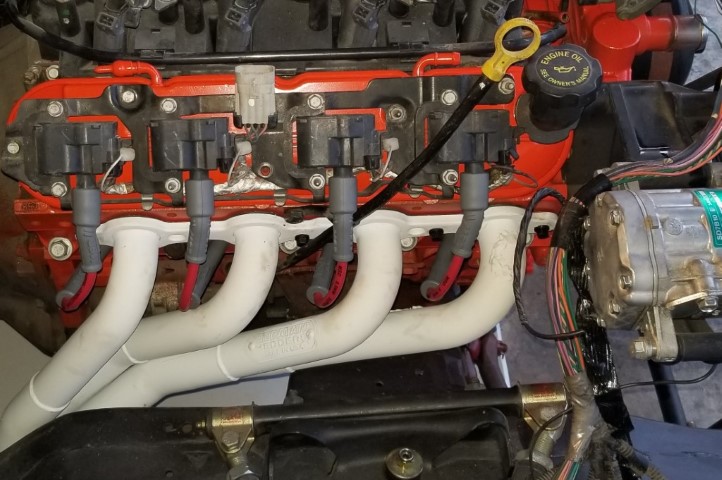 New shiny paint on the valve covers too, and the brake vacuum