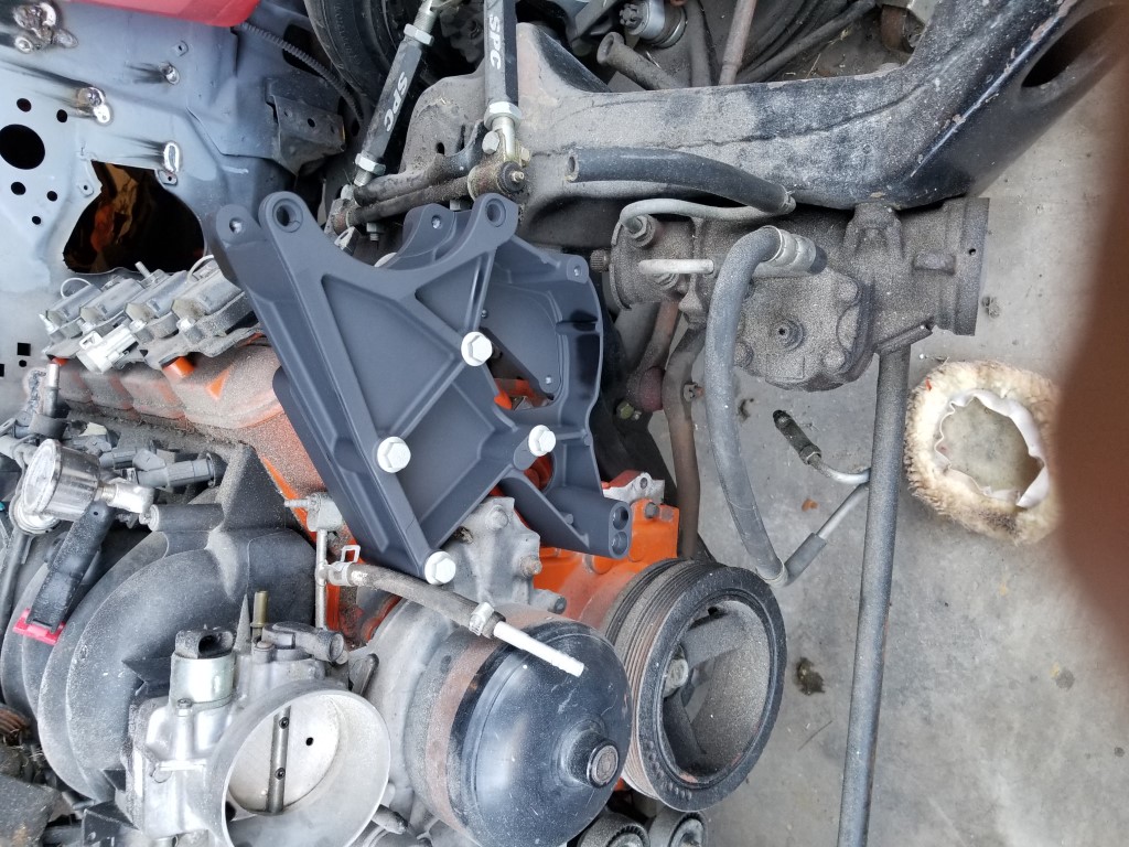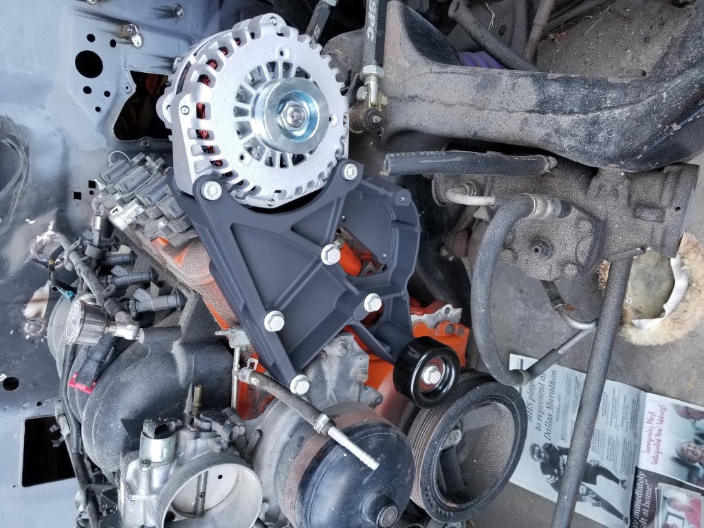 I got the Holley alternator relocation bracket. It looks nice, but my