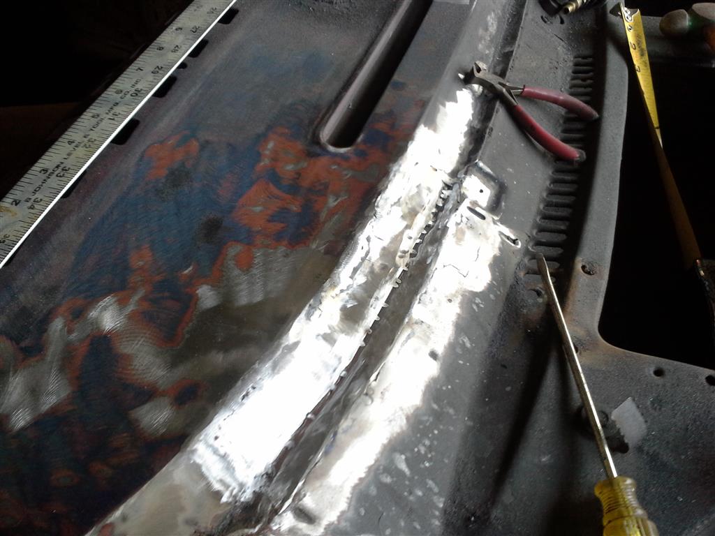 Corrected the low spot in the dash top, too - cut the edge, pried it up,