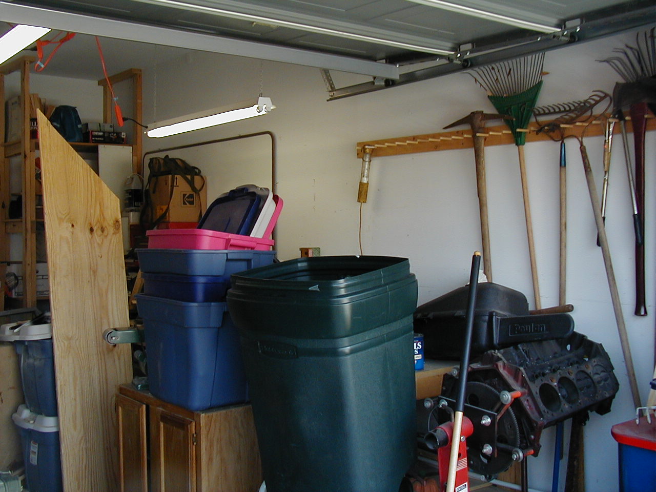 | View towards the door of the garage. The large metal cabinet was left behind by the previous owner, which was awful nice of him. |
