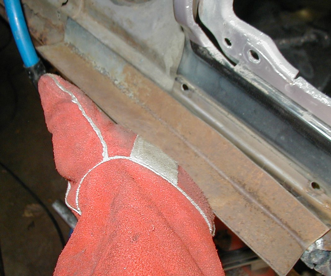 | Welded the trunk side. The lamp portion has not been cut out completely yet. I don't remember where I read this plan for replacing sheetmetal, but it seems to work really well. Basically, I cut both bits at the same time so I can keep a consistent gap. |