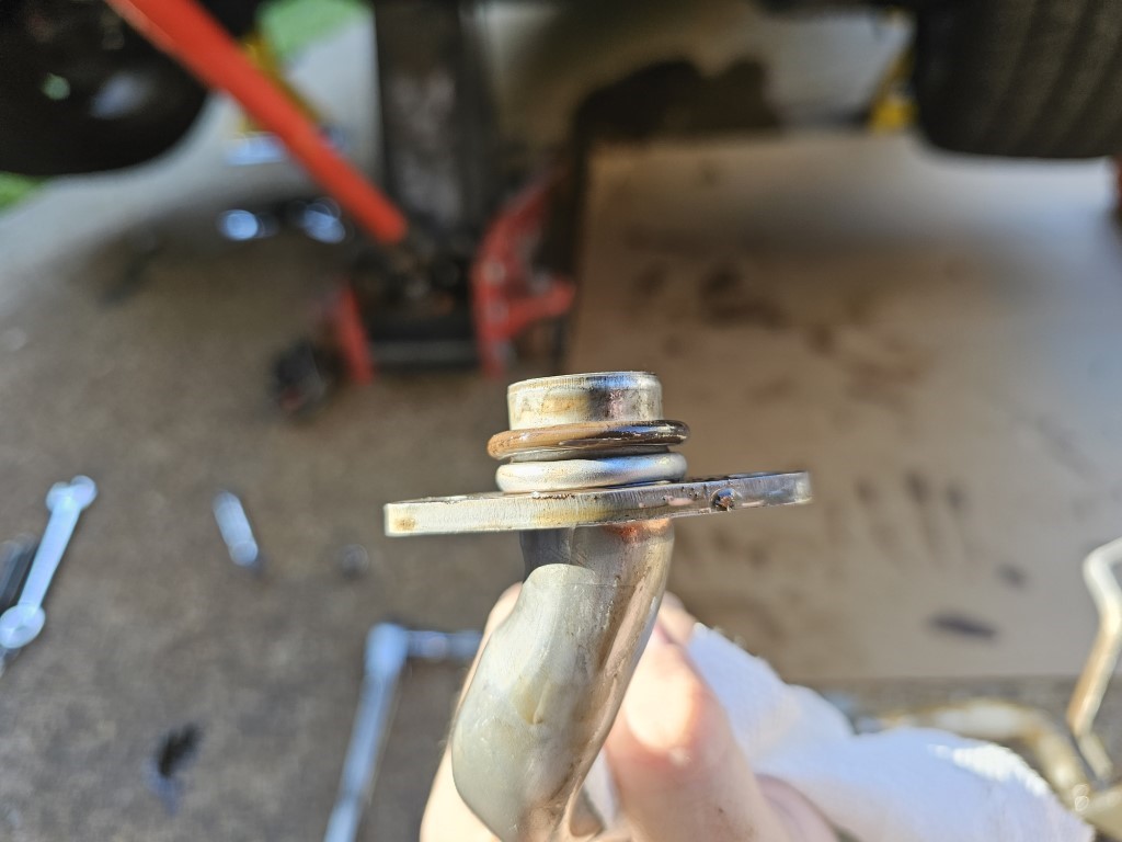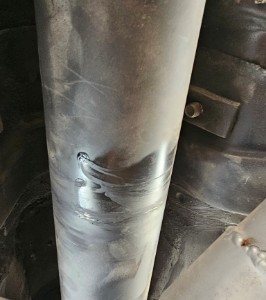 | The driveshaft is rubbing on a something. Not pictured: I removed the driveshaft, and hammered the brace it was rubbing on to gain some clearance. Improved but maybe not fixed. | ![]() |