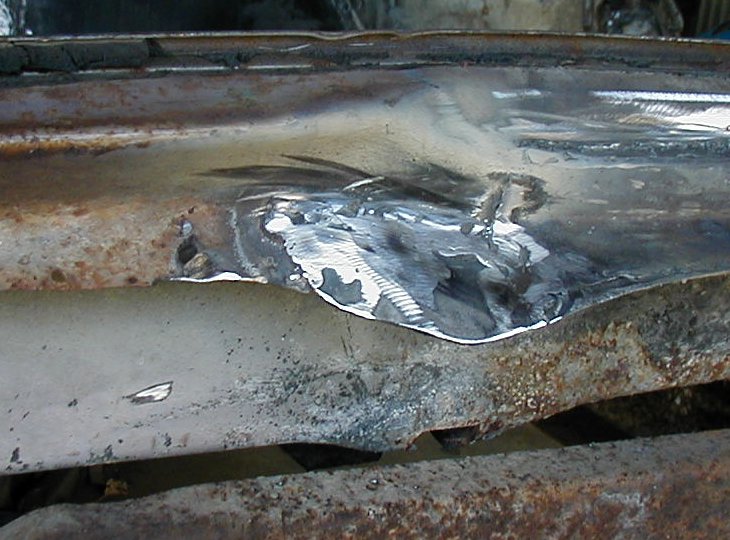 ![]() | Big, ugly welds where I burned through the first time, tiny dainty welds where I didn't. |