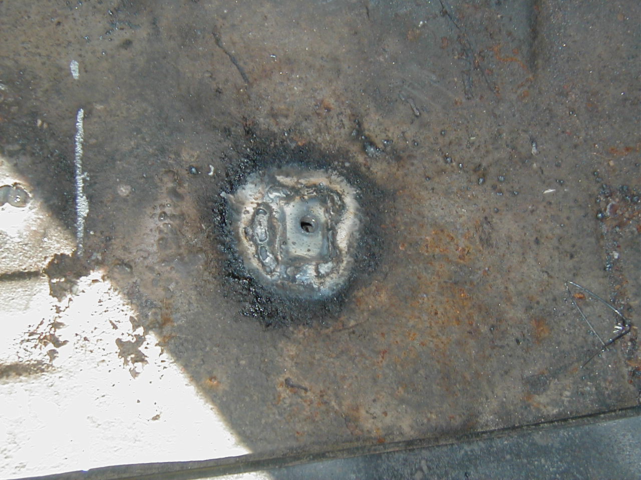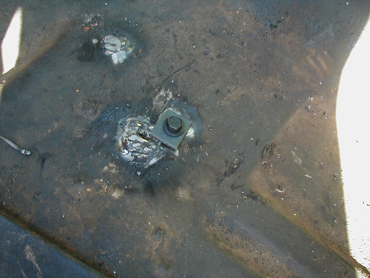| First mount welded down, complete with ugly welds. At least I know they've got good penetration, right? |
